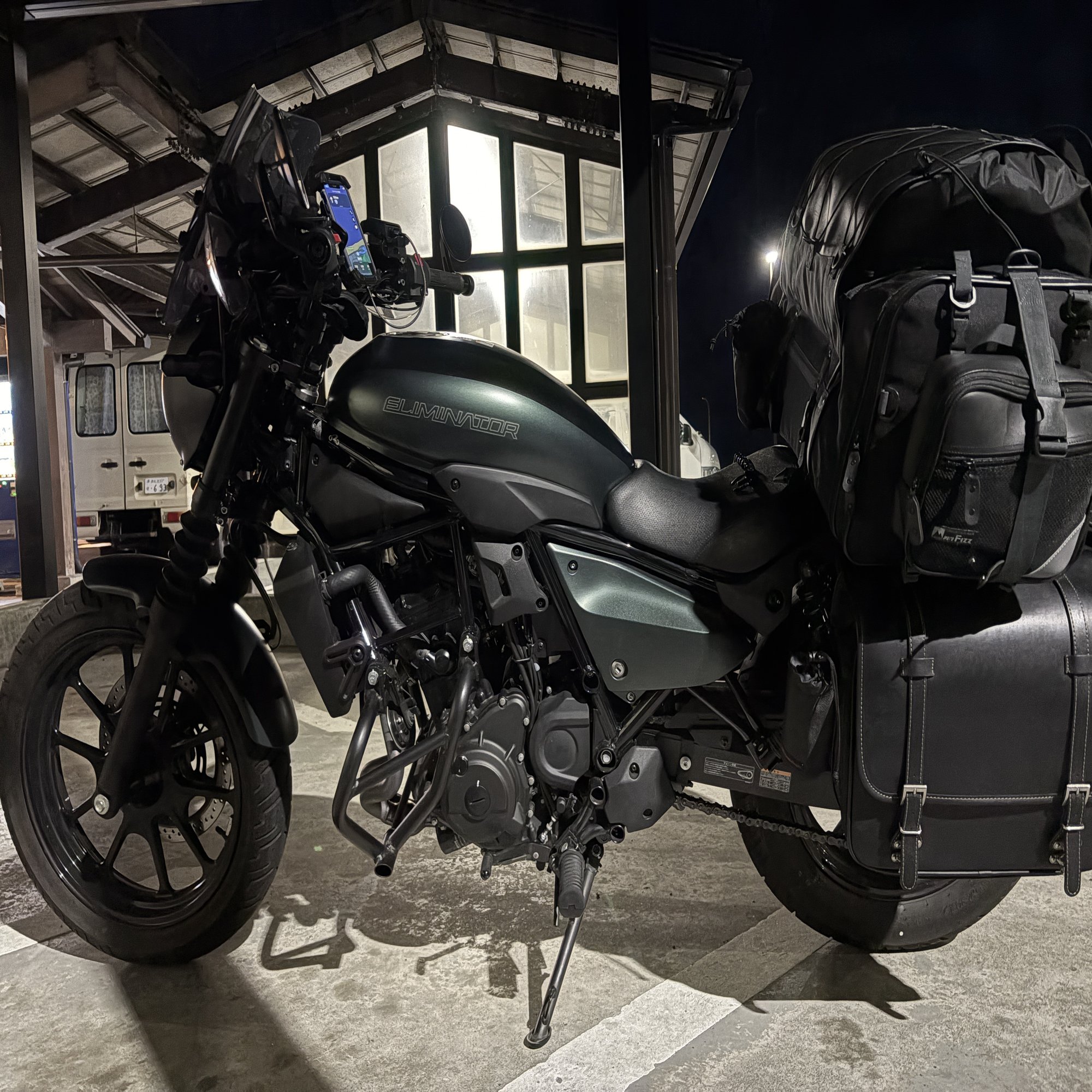 等など、これまでの冬のツーリングで経験してきた、様々な修行道の集大成というべき装備で、今回は走っております。