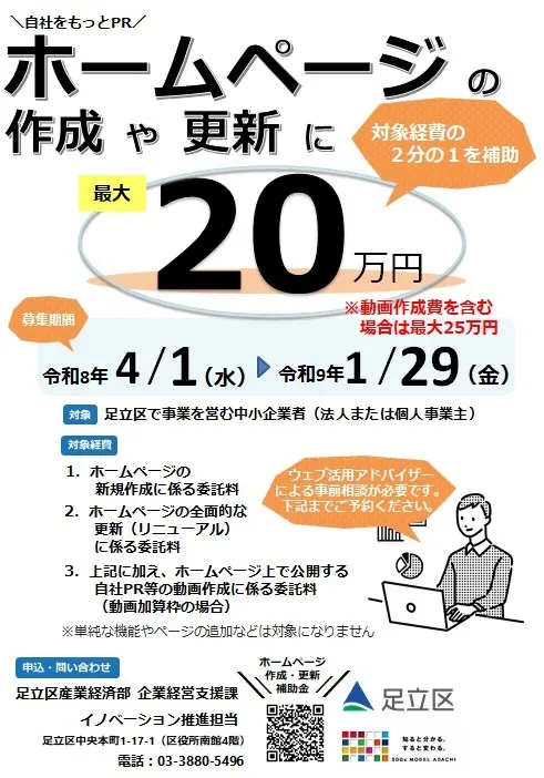 【足立区 ホームページ作成・更新補助金 補助金】