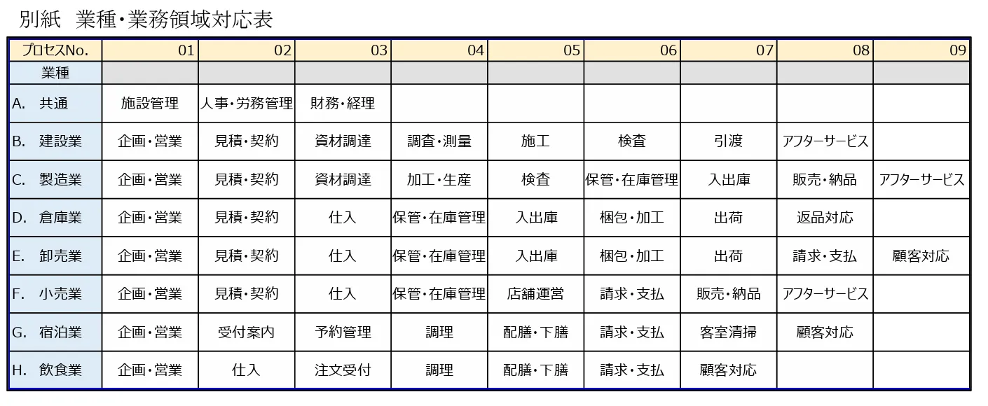 省力化投資補助金の申請ができる、対象業種の一覧表を添付します。